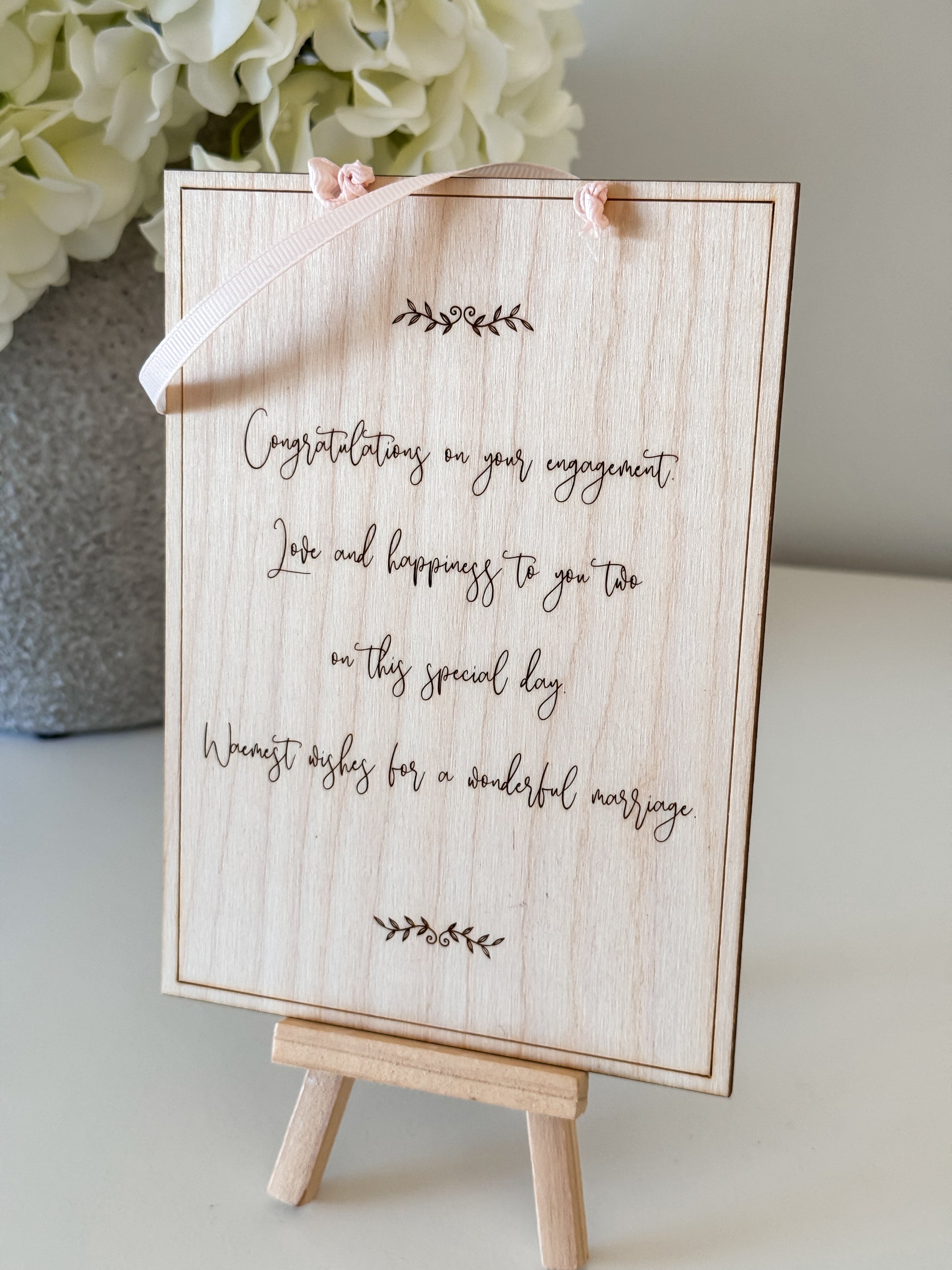 Each plaque can be personalized with the couple's names and engagement date, with the option to add your own heartfelt wishes on the back.