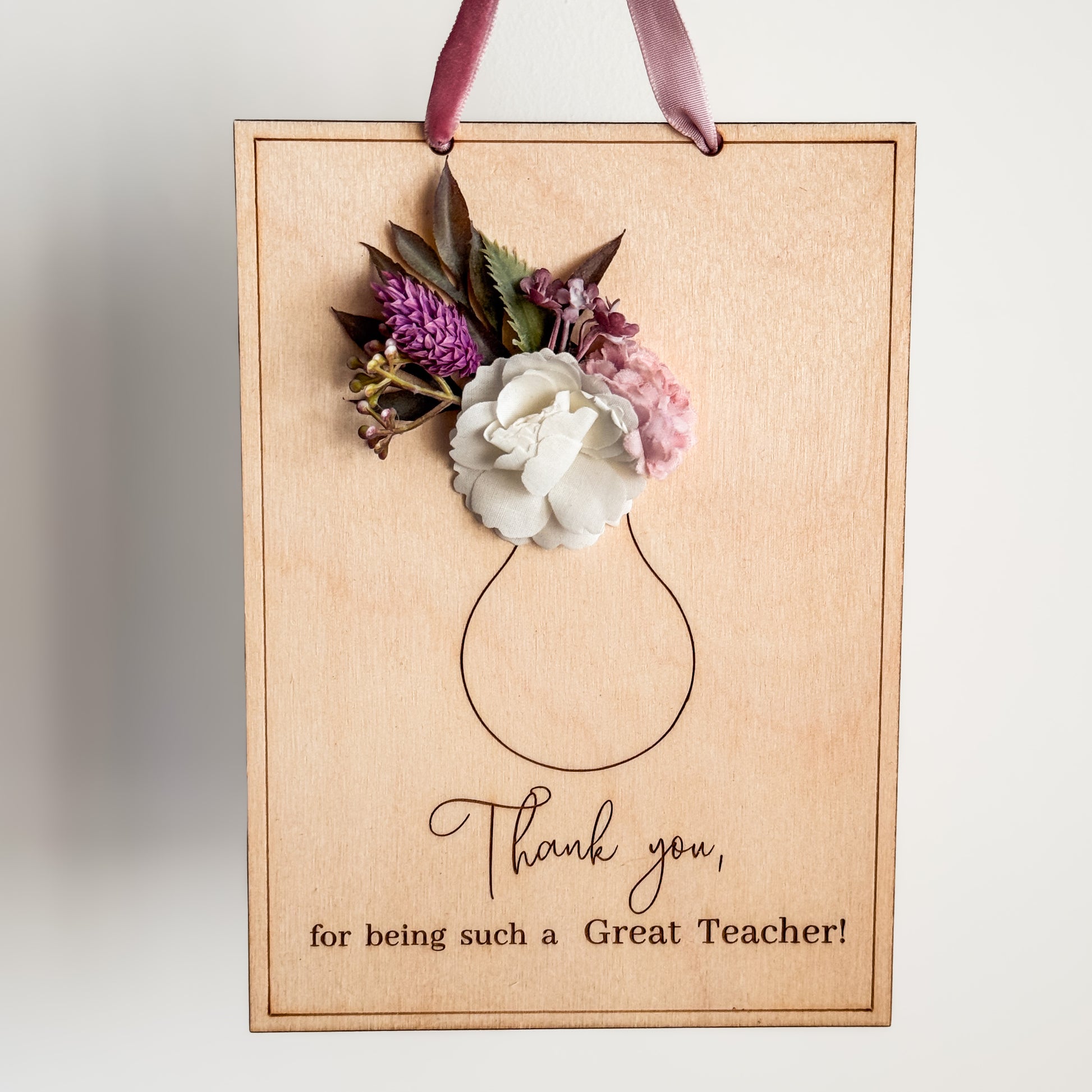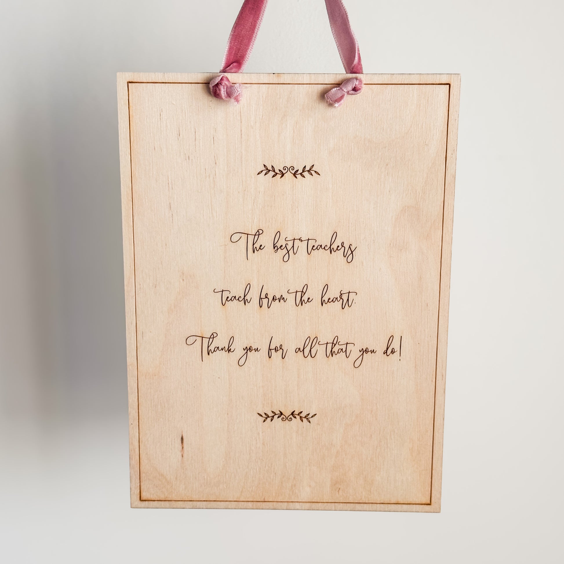 Each plaque can be personalized to add a special touch. Presented in an elegant gift box with ribbon and preserved flowers, making it ready to give at the end of the school year.