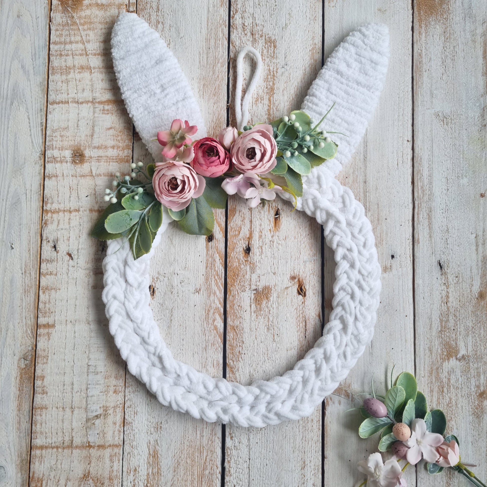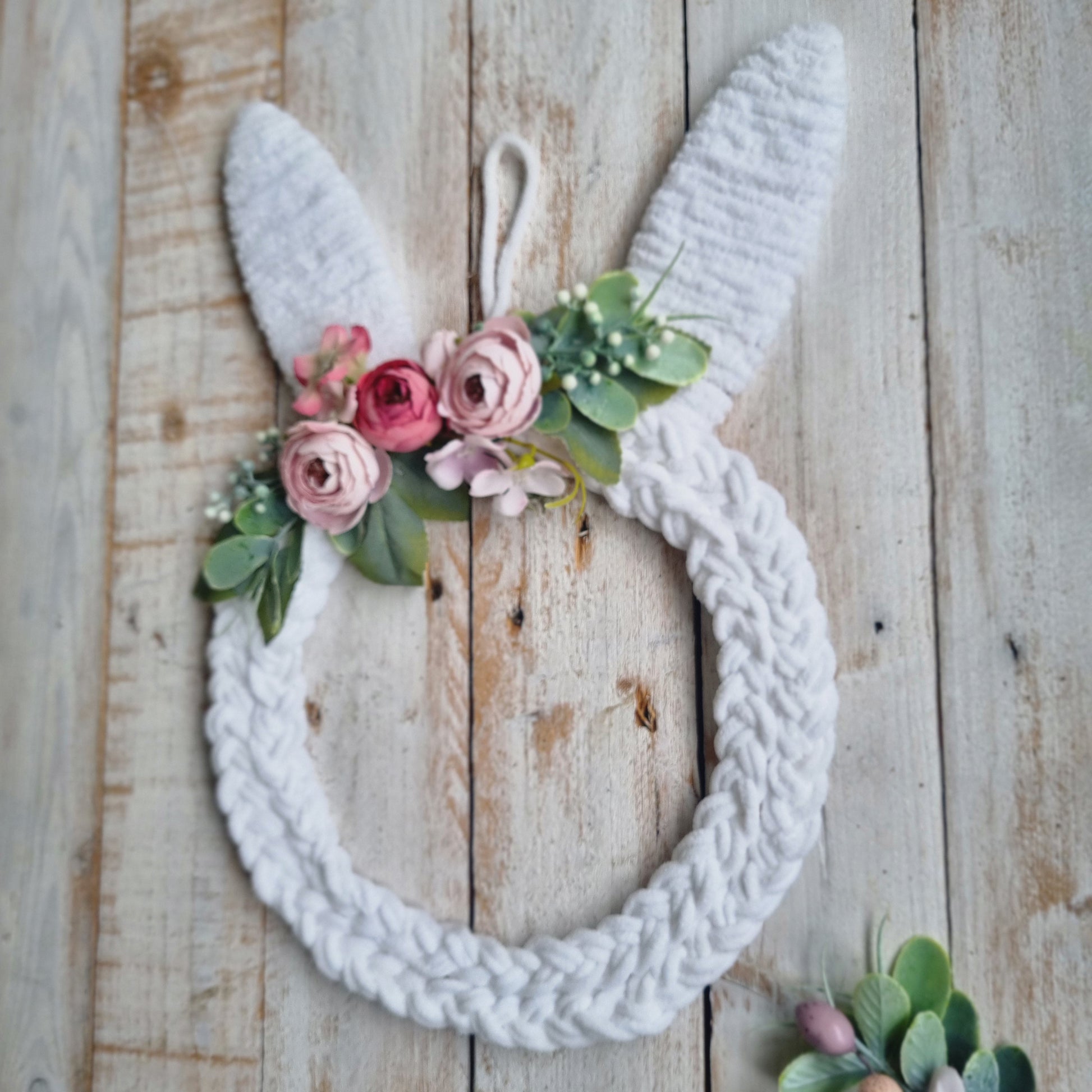Hand braided Easter Bunny Wreath percect addition to your Easter decor.